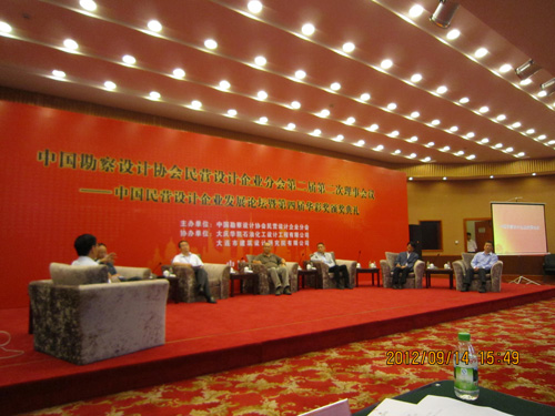 中国勘察设计协会民营设计企业分会第二届第二次理事会议于2012年9月14日在大连举行。本次会议的主办单位是中国勘察设计协会民营设计企业分会,协办单位是大庆华凯石油化工设计工程有限公司和大连市建筑设计研究院有限公司。