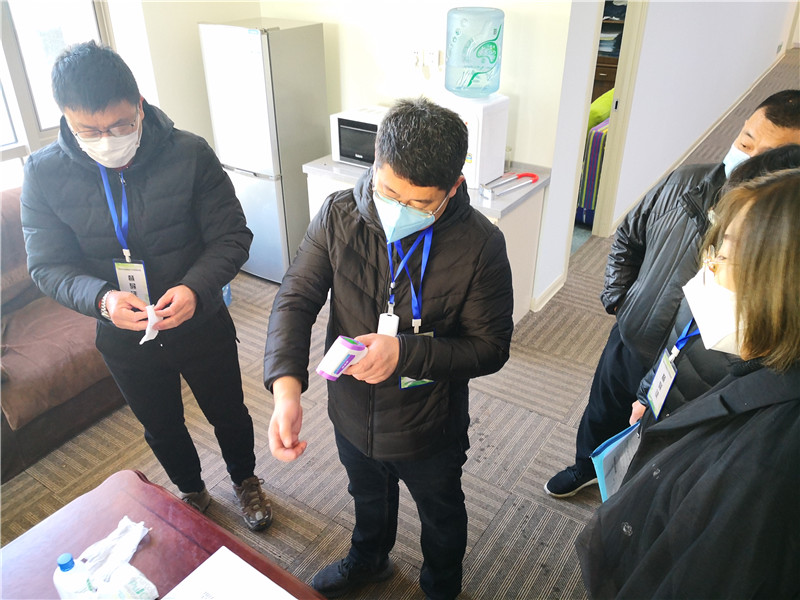 3月11日上午,大连分公司办公所在的街道防疫工作领导小组督导检查疫情防控工作。防疫工作领导小组一行人先后对分公司入户区、办公区、会议区等疫情防控工作区域,向大连分公司办公室、后勤部有关负责和防疫人员详细了解了定期、人员出入检查、测温、登记、隔离观察场所准备等疫情防控工作落实情况。