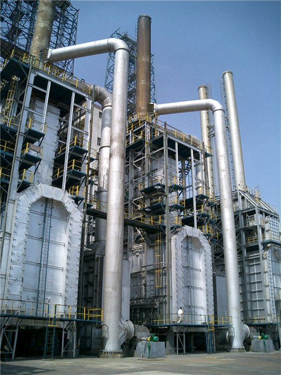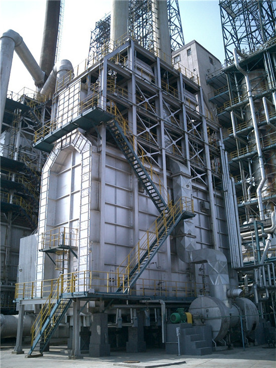 本炉设计时,为了解决本装置自产低压瓦斯燃烧问题设计采用了HKL-80燃烧器,有效的解决了低压瓦斯的预混和燃烧问题。为了强化对流室炉管的外膜传热系数,减少炉管根数设计采用了R型锯齿形翅片管。为了保证强制通风的需要,本炉设计时采用了备用风机,工作风机一旦出现问题备风机及蝶阀(执行机构)会自动投入运行,所以要求备用风机必须长年处于完好状态。为了提高加热炉的热效率,减少炉体泄漏,全炉在结构上进行了全密封设计。为了提高加热炉的热效率、装置能耗,在对流室顶部设置了两台蒸发液式传热管预热器,它具有传热效率高、使用年限长的特点。为了提高加热炉热效率,减少预热器低热腐蚀的机会,使其加热炉的排烟温度常年保持在160℃左右,设计采用了本公司的专利技术调风阀,如果加热炉低负荷或冬季由于外界空气温度低,使预热器的排烟温度低于155℃时,可适当开启风道下部的调风阀,使其排烟温度常年保持在155℃以上,以确保预热器不会造成低热腐蚀。